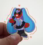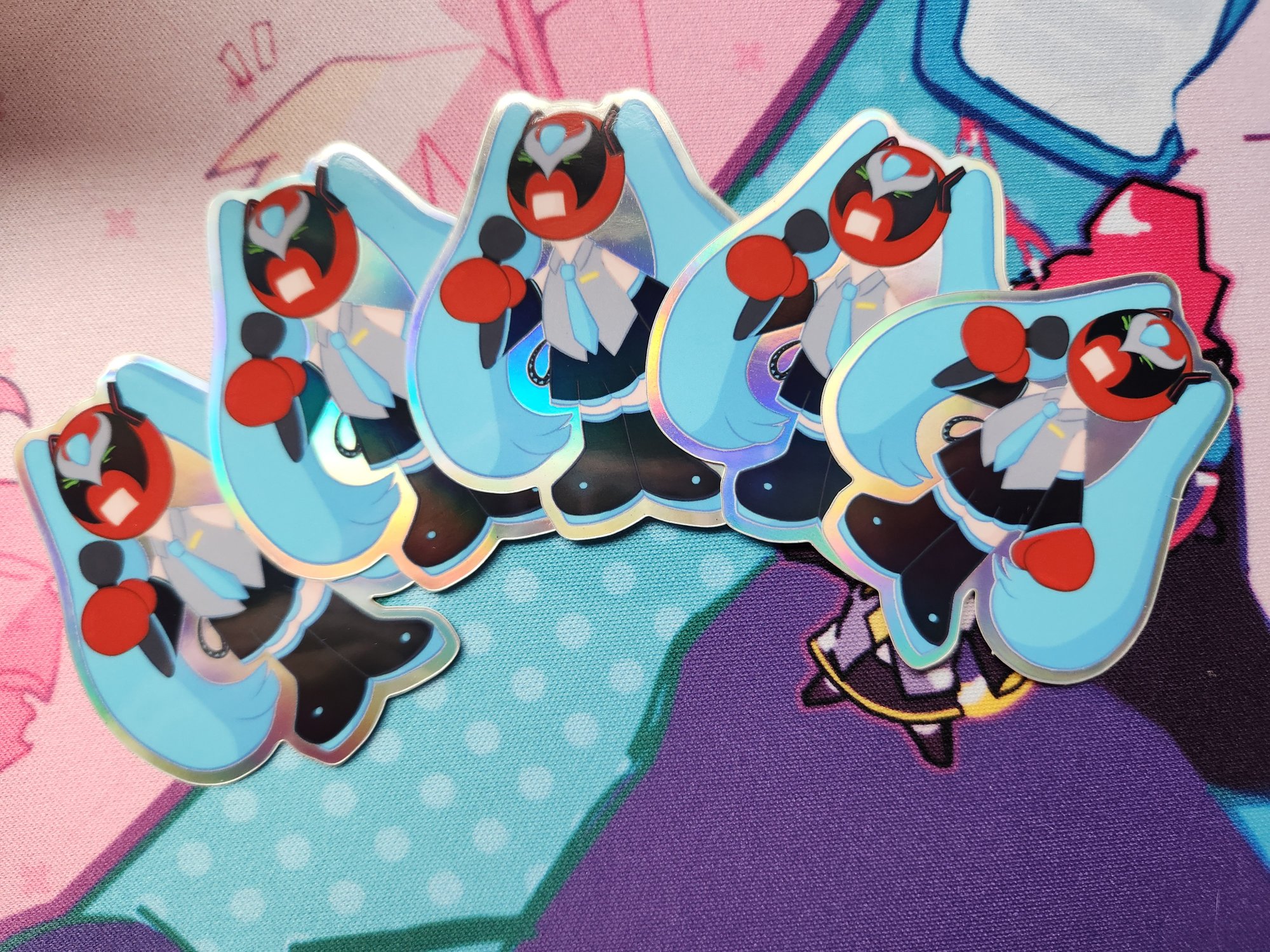 Sticker is 2" x 1.9", glossy with holographic finish. Perfect for people who like putting stickers on things!